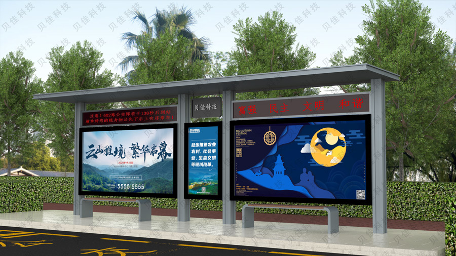 宿遷貝佳科技有限公司,位于江蘇省宿遷市泗洪縣常泗園區,緊鄰新揚高速,地理位置優越,交通便利。公司總占地面20余畝,標準化生產車間12000平米,F有10年以上專業候車亭設計團隊8人,候車亭專業技術人員55人,候車亭研發團隊10余人。擁有大族2000W光纖激光切割機、亞威數控轉塔沖床、新月自動化噴涂流水線、亞威數控折彎機、亞威數控剪板機、恒力數控刨槽機等先進的候車亭生產設備。主要從事公交候車亭的研發、設計、生產、安裝、售后等服務。主營產品有公交候車亭、智能電子站牌、公交站牌、公共自行車棚、閱報欄、廣告燈箱、智能垃圾箱、核酸檢測亭、崗亭、移動廁所等。