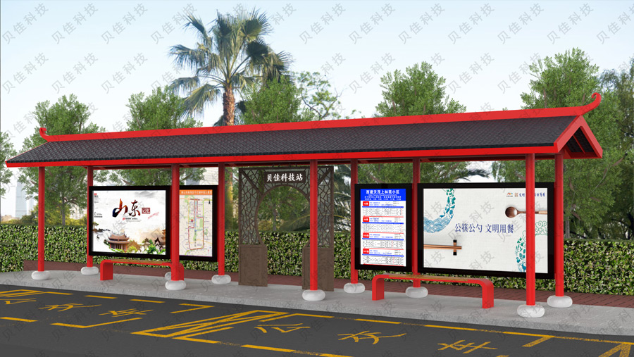 宿遷貝佳科技有限公司,位于江蘇省宿遷市泗洪縣常泗園區,緊鄰新揚高速,地理位置優越,交通便利。公司總占地面20余畝,標準化生產車間12000平米。現有10年以上專業候車亭設計團隊8人,候車亭專業技術人員55人,候車亭研發團隊10余人。擁有大族2000W光纖激光切割機、亞威數控轉塔沖床、新月自動化噴涂流水線、亞威數控折彎機、亞威數控剪板機、恒力數控刨槽機等先進的候車亭生產設備。主要從事公交候車亭的研發、設計、生產、安裝、售后等服務。主營產品有公交候車亭、智能電子站牌、公交站牌、公共自行車棚、閱報欄、廣告燈箱、智能垃圾箱、核酸檢測亭、崗亭、移動廁所等。